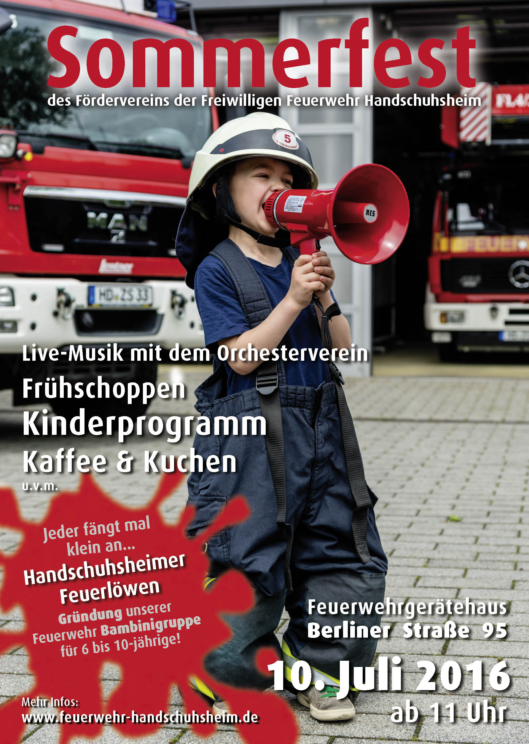 Wie jedes Jahr veranstalten die Freiwillige Feuerwehr Handschuhsheim und der Förderverein der Abteilung ihr Sommerfest. Neben Fahrzeugausstellungen und Spiel-Stationen für Kinder haben Interessierte in diesem Jahr die Möglichkeit, sich über die neu gegründete Bambini-Feuerwehr zu informieren. Wie immer steht für den kleinen und großen Appetit ein Vielzahl an Speisen und Getränken zur Auswahl. Beginn des Sommerfests ist ab 11 Uhr.
